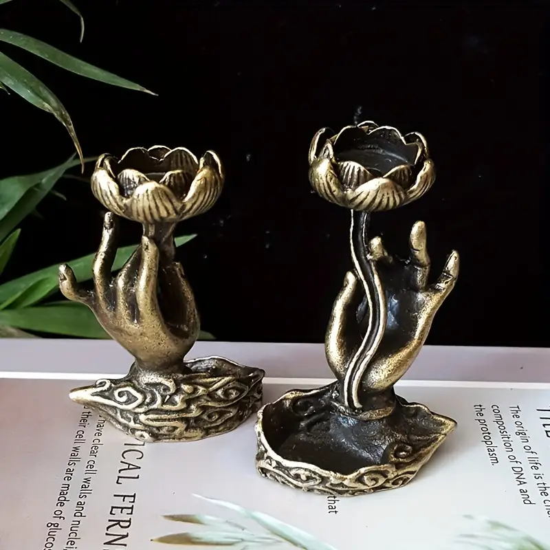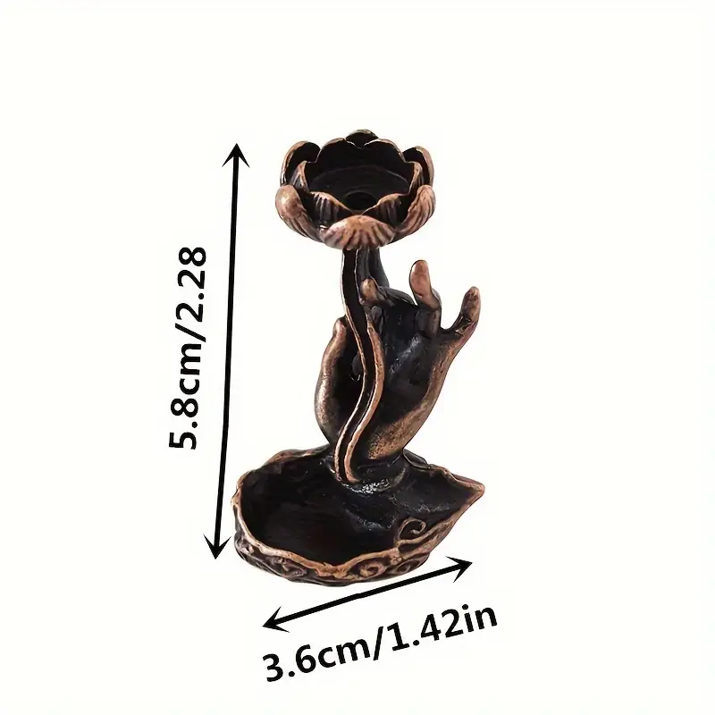 Arzătorul de tămâie cu lotus și mână este un ornament de artizanat perfect pentru spații dedicate relaxării. Este ideal pentru yoga, meditație și alte practici spirituale, oferind un aer de calm și serenitate în orice cameră.