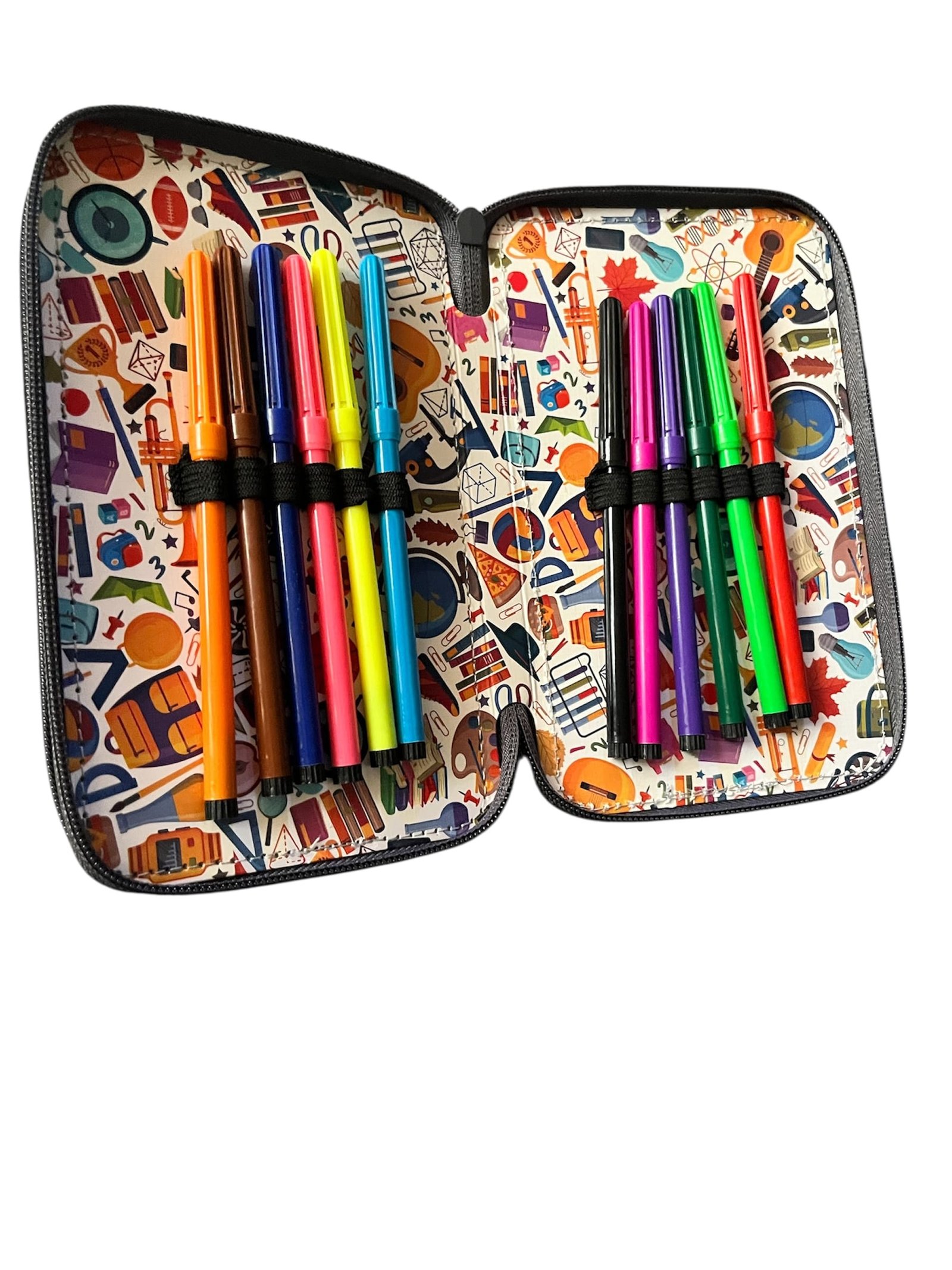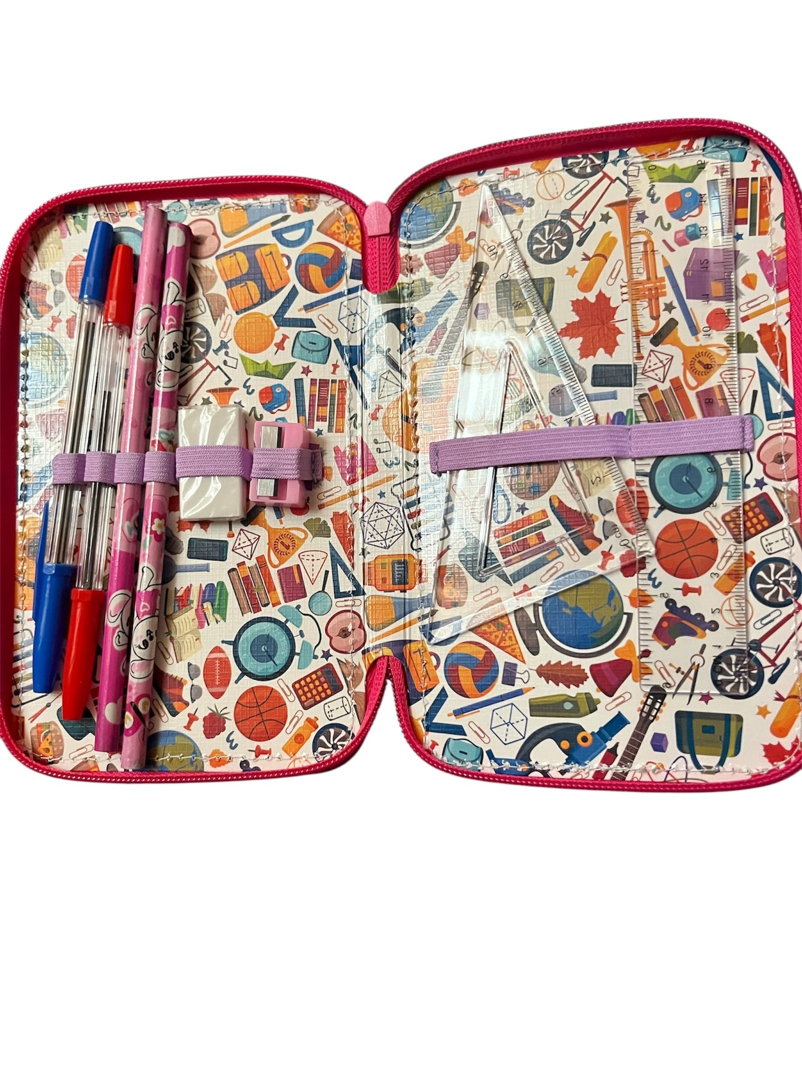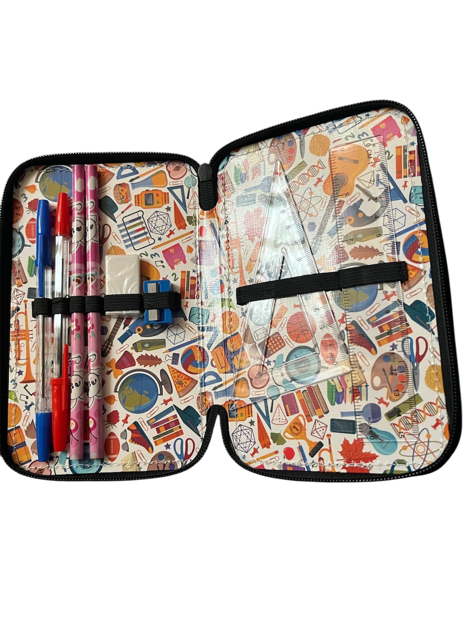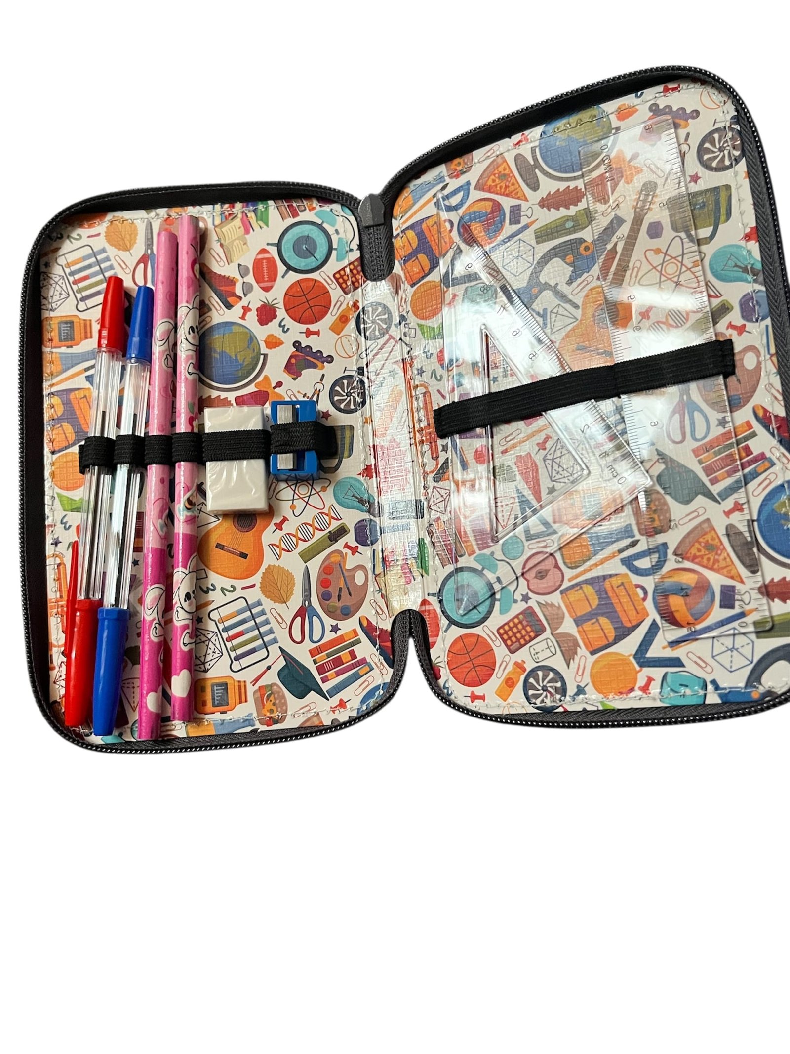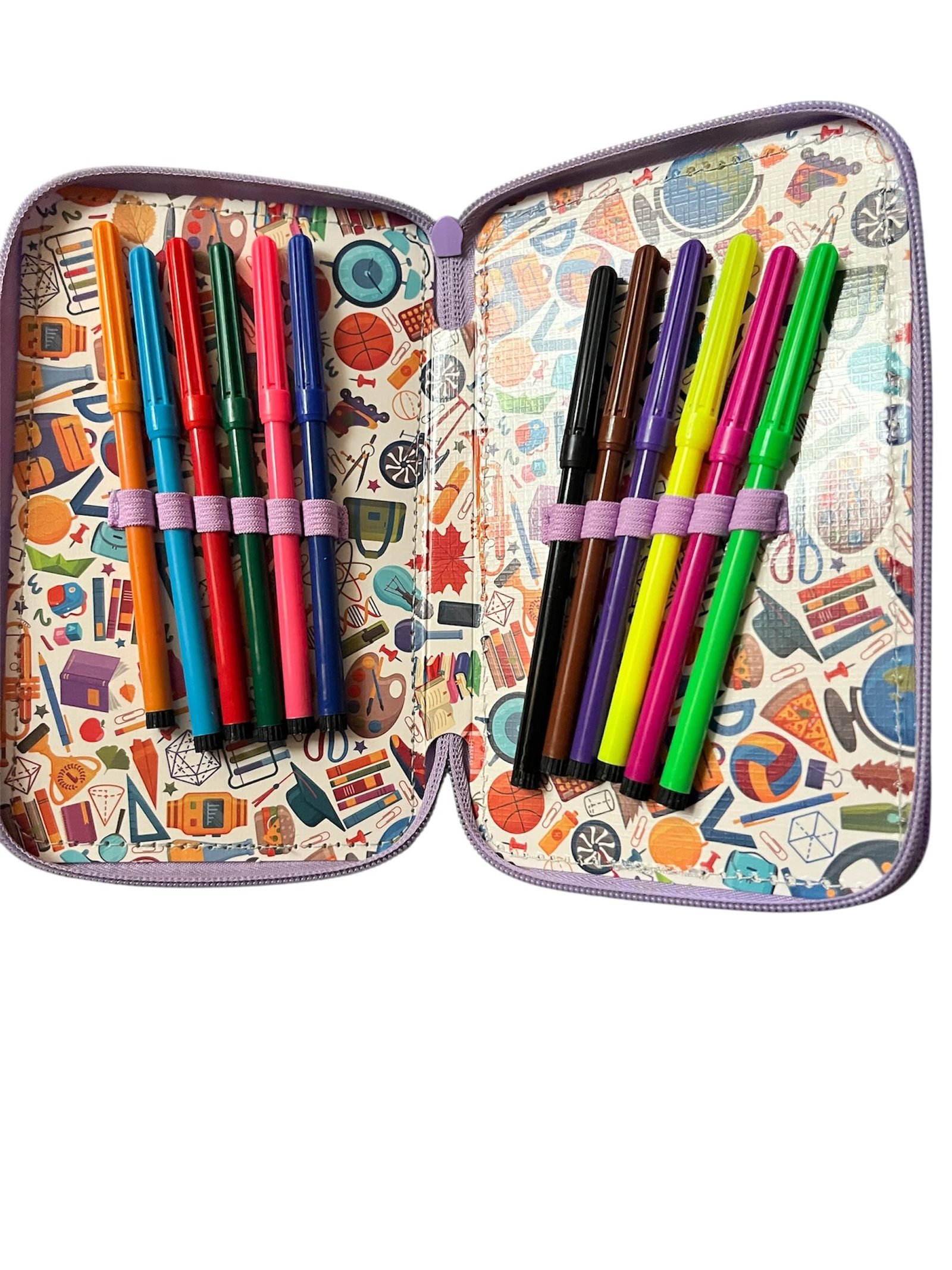 Penar cu 3 fermoare echipat, impermeabil si buretat, echipat cu 32 de piese, in diferite modele si culori este instrumentul ideal pentru elevii care au nevoie de organizare și funcționalitate.