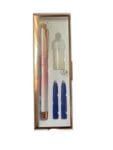 Stilou metalic cu penita iridium aurie in V cu scriere medie.
